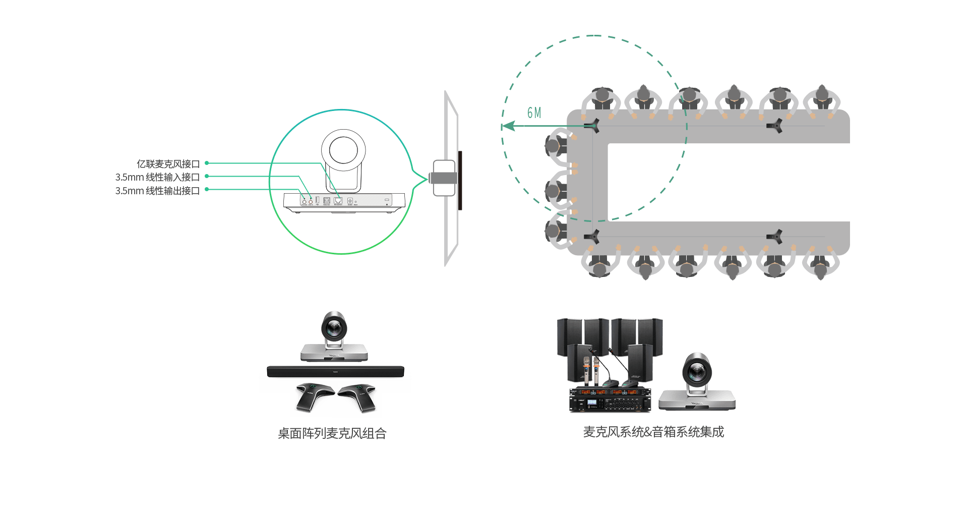 UVC80內(nèi)置音頻模塊與接口,能夠搭配億聯(lián)可級(jí)聯(lián)的桌面陣列式麥克風(fēng)VCM34與MSpeaker條形音箱,或通過(guò)線性輸入輸出接口與會(huì)議室的調(diào)音臺(tái)音頻系統(tǒng)集成,滿足用戶在大會(huì)議室場(chǎng)景多樣的音頻需求。
