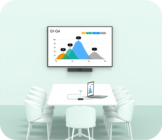 億聯(lián)A20支持有線BYOD模式。只需一根USB-C線連接電腦及億聯(lián)輔流盒子VCH51,即可快速調(diào)用會(huì)議室音視頻設(shè)備,實(shí)現(xiàn)高清穩(wěn)定的內(nèi)容投屏共享,開(kāi)啟專業(yè)音視頻會(huì)議體驗(yàn)。