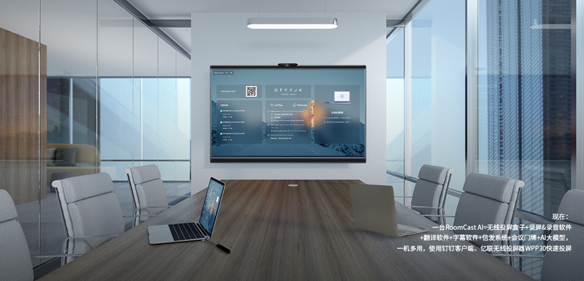 RoomCast AI支持會(huì)議室設(shè)備統(tǒng)一管理,IT可通過后臺(tái)遠(yuǎn)程控制、輕松運(yùn)維;可同步會(huì)議日程顯示,聯(lián)網(wǎng)支持信息發(fā)布,協(xié)同辦公更高效。