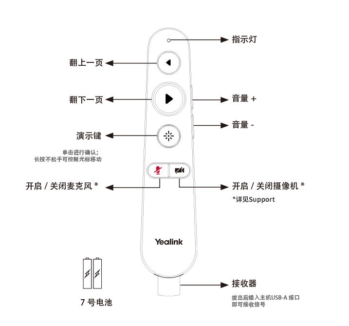 會議平板演示筆 會議平板演示筆是由億聯(lián)推出的專為搭配億聯(lián)會議終端而設計的高效工具,旨在提升會議效率、優(yōu)化會議體驗。該演示筆具備多媒體翻頁、空中鼠標以及基本會控功能,使用戶能更好的掌控會議進程,更高效地傳遞核心觀點。